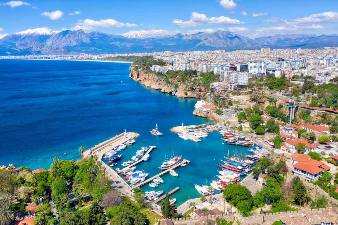 Antalya is a popular tourist destination in Turkey, known for its white sandy beaches, crystal-clear waters, stunning mountains, and ancient ruins. It is also famous for its warm and sunny weather for much of the year. Some of the most popular tourist attractions in Antalya include the old town of the city, Lara beach, the Aqualand wáter park, and the ruins of the ancient city of Perge.